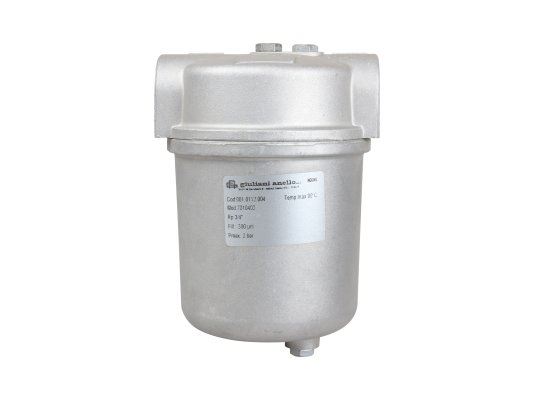 Жидкотопливный фильтр Giuliani Anello 7010403, арт: 001.0112.004 широко используется в промышленных системах сжигания дизельного топлива и мазута. Корпус фильтра оснащен надежной алюминиевой головкой, отлитой под давлением, с внутренней резьбой BSP (ISO), а также литой алюминиевой чашей. Фильтр удаляет из топлива все загрязнения и примеси, размер которых превышает 300 мкм, обеспечивая защиту оборудования от повреждений.